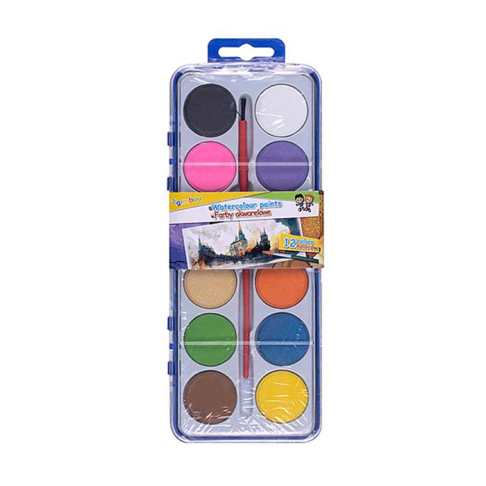 Školské akvarelové farby Gimboo - 12 farieb so štetcom