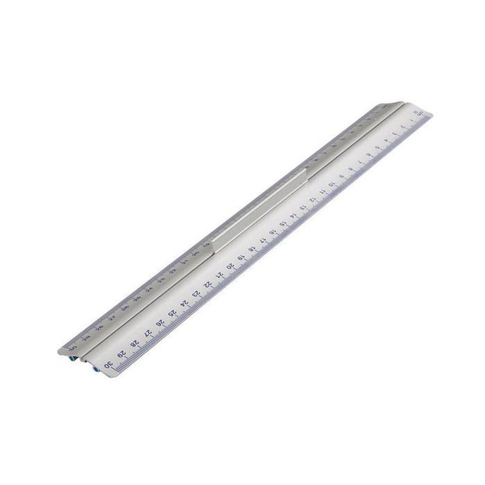 Pravítko vyrobené z eloxovaného hliníka. Metrické značenie v cm/ mm. Obojstranná oderuvzdorná stupnica mierky v modrej farbe. Dva protišmykové pásiky na spodnej strane, rukoväť pre lepšie držanie. Vhodné pre pravákov aj ľavákov. Šírka 4,5 cm.