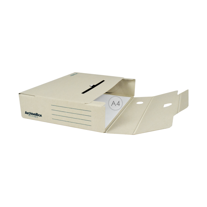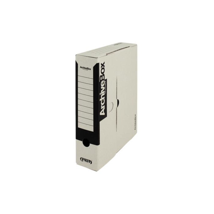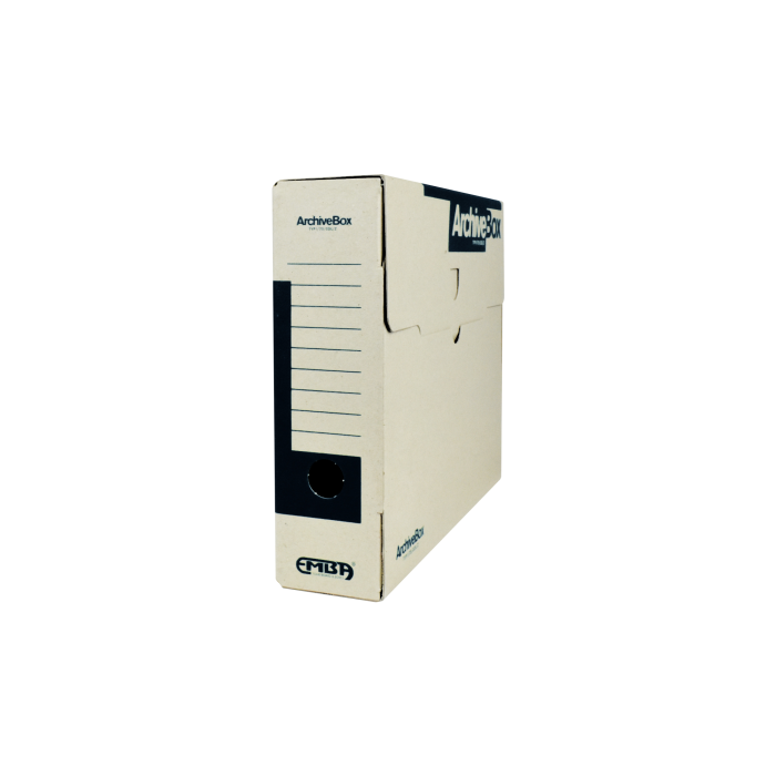 Systém archívnych boxov a škatúľ z vlnitej lepenky. Dodávané v rozloženom stave. Farba prírodná hnedá. Archívny box z hladkej ručnej lepenky, 1 000 g/ m². Konštrukčné riešenie boxu umožňuje rýchly prístup k vloženým dokumentom. Rozmery 75 × 330 × 260 mm. Väčšie balenie 25 ks. Farba čierna.