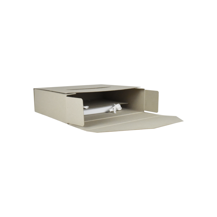 Škatuľa pre náročnú archiváciu - obal na odovzdanie dokumentov so znakom `A` do Štátneho archívu. Vyrobená z hladkej archívnej lepenky.