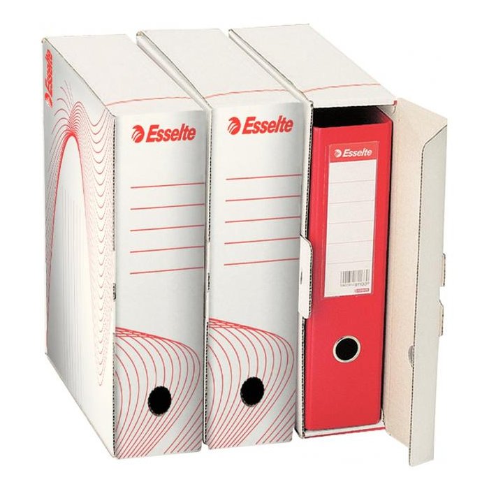 Box na uskladnenie jedného zakladača formátu A4 so šírkou chrbta 80 mm. Otvor na ľahkú manipuláciu, predtlač na identifikáciu obsahu. Väčšie balenie 25 ks.