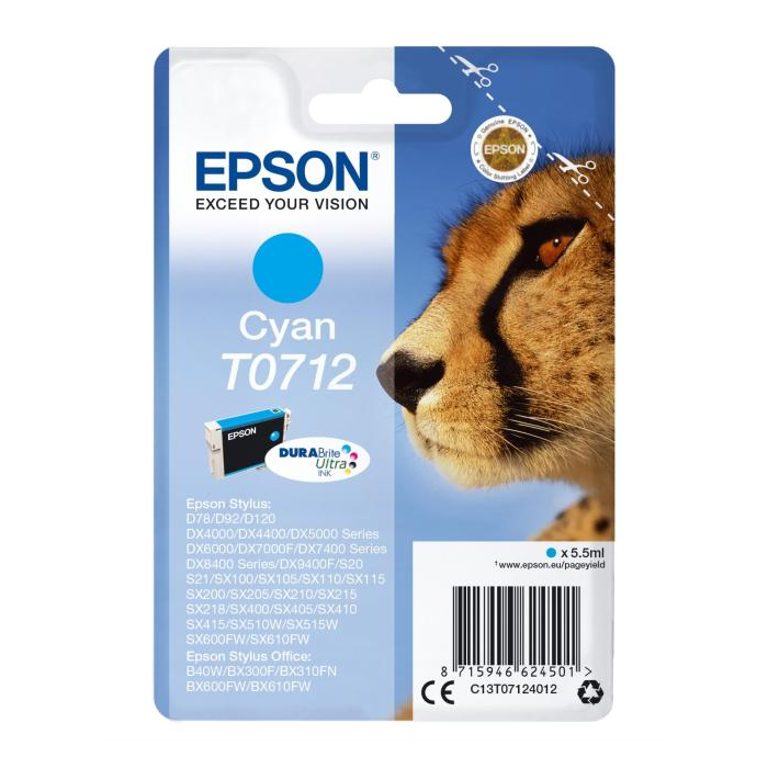 Atramentová náplň Epson T07124011 cyan pre D78/DX4000/4050/5000/5050/6000 (5,5 ml)