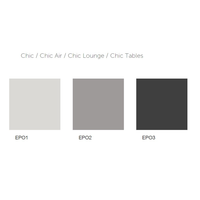 Sedenie Chic je doplnené o kolekciu stolov. Sú sú charakteristické svojím odlahčeným vzhľadom a sofistikovaným minimalistickým dizajnom. Verzia pre reštaurácie je s kovovou kostrou a širokým výberom stolových dosiek (keramika, sklo, drevo, kov) rôzných tvarov.