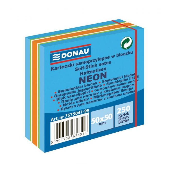 Bloček Donau neónový 50 x 50 mm, mix neónových farieb, 250 lístkov