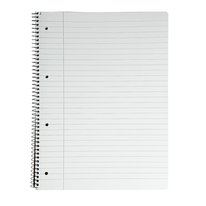 Vysokokvalitný blok formátu A4 s kovovou bočnou špirálou, vyrobený zo 100 % recyklovaného papiera s hmotnosťou 90 g / m².