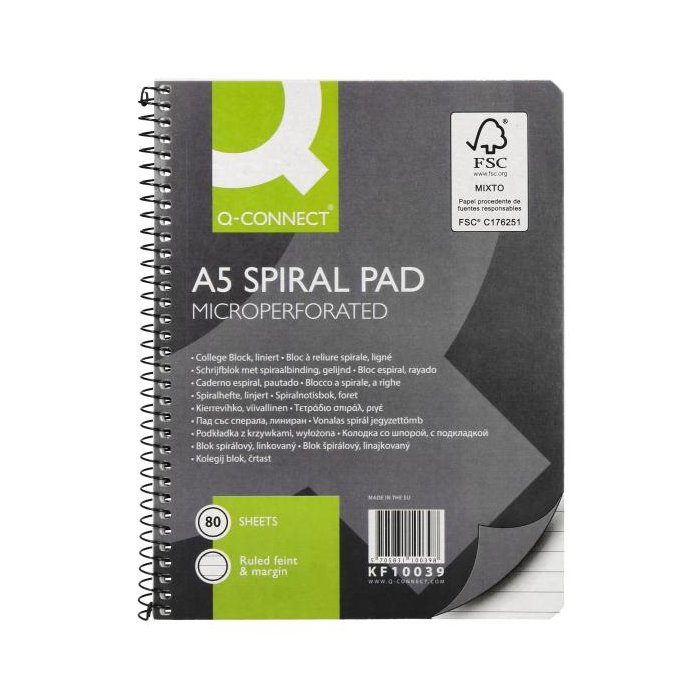 Blok College Q-Connect s kovovou špirálou formátu A5 s 80 listami, so špirálou na boku v atraktívnom vyhotovení. Dierovanie 6. Väčšie balenie 5 ks.
