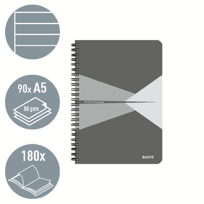 Blok Leitz Office Card A5 90 listov linajkový sivý