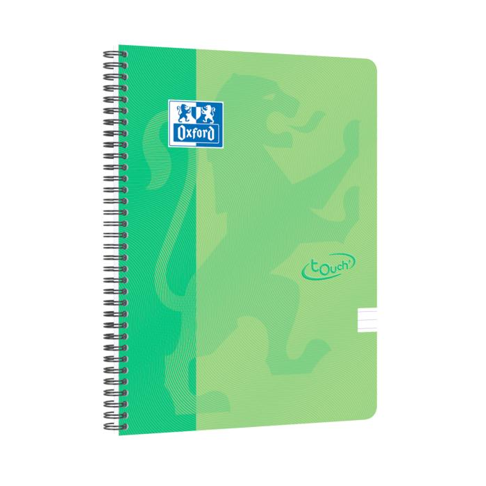 Blok špirálový Oxford Nordic Touch A4+/70 listov linajkový, zelený na dvojitej čiernej špirále, dosky z tvrdého kartónu so soft touch povrchom, kompatibilný so SCRIBZEE, biely, dokonale hladký papier Optik Paper+, neprepíja, certifikácia EÚ Ecolabel.