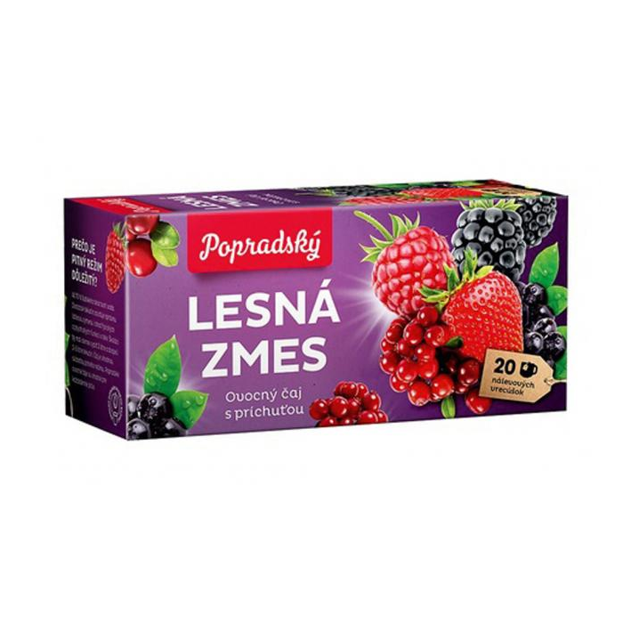 Aromatizovaný ovocný čaj s príchuťou Lesná zmes. Porciovaný v nálevových vreckách.
