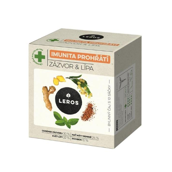zázvor 30%, vňať mäty piepornej 24%, lípový kvet 22%, rooibos 10%, citronová aróma, kyselina citrónová, prírodná zázvorová aróma, citronová kôra 1%