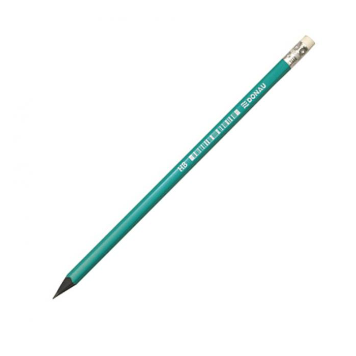 Kasická drevená grafitová ceruzka s gumou, vhodná do kancelárie i školy, tvrdosť HB. Farba tela tyrkysová.