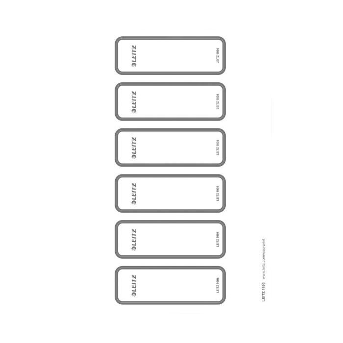 Samolepiace potlačiteľné chrbtové štítky, ktoré uľahčujú a sprehľadňujú popis zakladačov Leitz WOW. Úzke 50 mm, pre úzky pákový zakladač Leitz 180° WOW (1006). Štítky sú perforované na hárku A4 pre jednoduchšiu manipuláciu. Navrhnite a vytlačte si svoj štítok na www.esselte.com/easyprint . 1 balenie = 10 hárkov (60 štítkov). Vhodné do laserových i atramentových tlačiarní a kopírok. Faba biela.