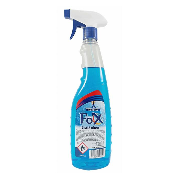 Klasický prípravok na čistenie skiel, okien a zrkadiel modrej farby obsahujúce niekoľko účinných látok. Prípravok je horľavý.
