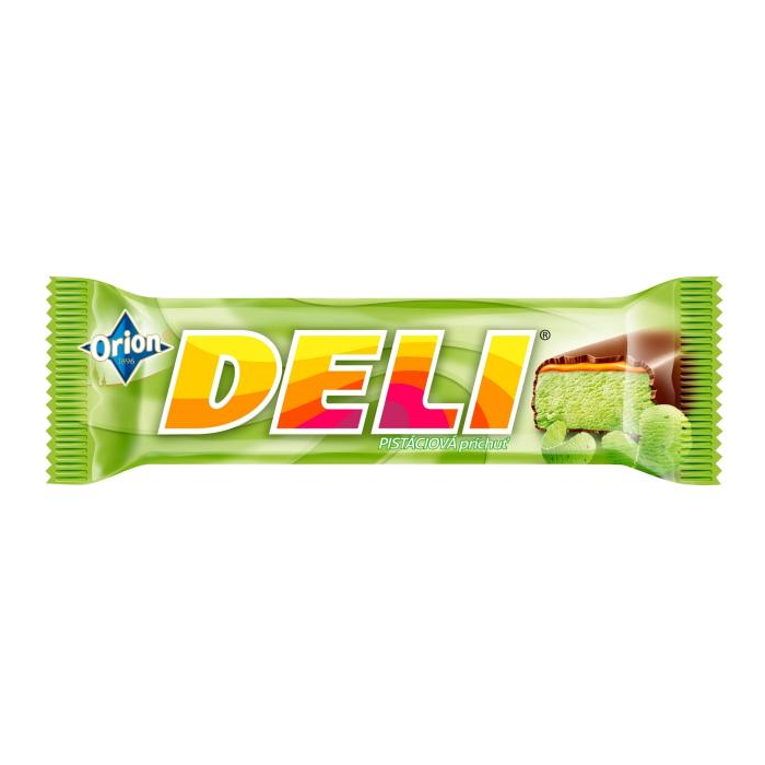 Tyčinka s pistáciovou príchuťou 60 % a karamelom 15 % máčaná v horkej čokoláde 25 %. Najlepšie je zostať nad vecou. A s tyčinkou DELI vo vrecku to ide skutočne ľahko. Táto šťavnatá čokoládová tyčinka s jemnou konzistenciou a skvelými príchuťami vznikla už v roku 1980. Vychutnajte si preto tyčinku s lahodnou našľahanou náplňou s pistáciovou príchuťou s tenkou vrstvou karamelu vo výbornej horkej čokoláde. Tyčinka DELI s pistáciovou príchuťou patrí právom medzi najobľúbenejšie príchute DELI.
