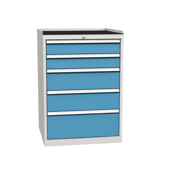 Dielenský kontajner na náradie s 5 zásuvkami a gumeným povrchom, v.103 x š.72 x h.70cm, modrá