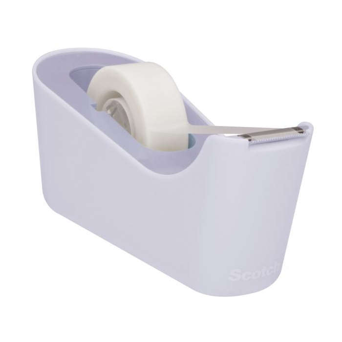Moderný a spoľahlivý dávkovač lepiacej pásky, ktorý umožňuje odvíjanie rôznych typov lepiacich pások s použitím jednej ruky. Súčasťou balenia je neviditeľná páska Scotch Magic rozmerov 19 mm × 33 m. Farba levanduľová.