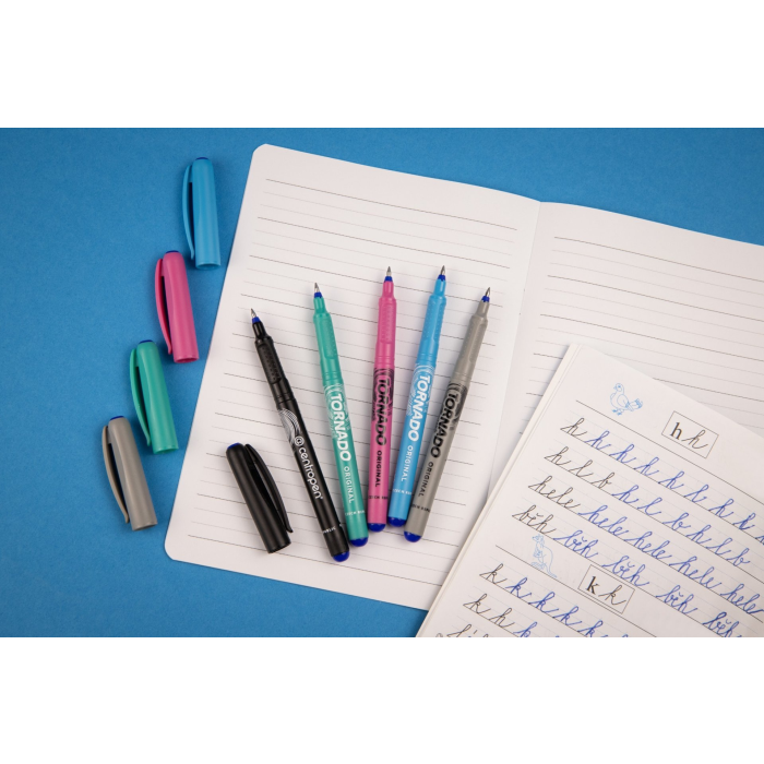 Roller pre školákov s ergonomickým držaním a masážnymi bodmi s modrým zmizíkovateľným atramentom. Pre ľavákov, pravákov i dysgrafikov. Šírka stopy 0,3 mm. Dodávaný v displeji 5 x 4 ks.