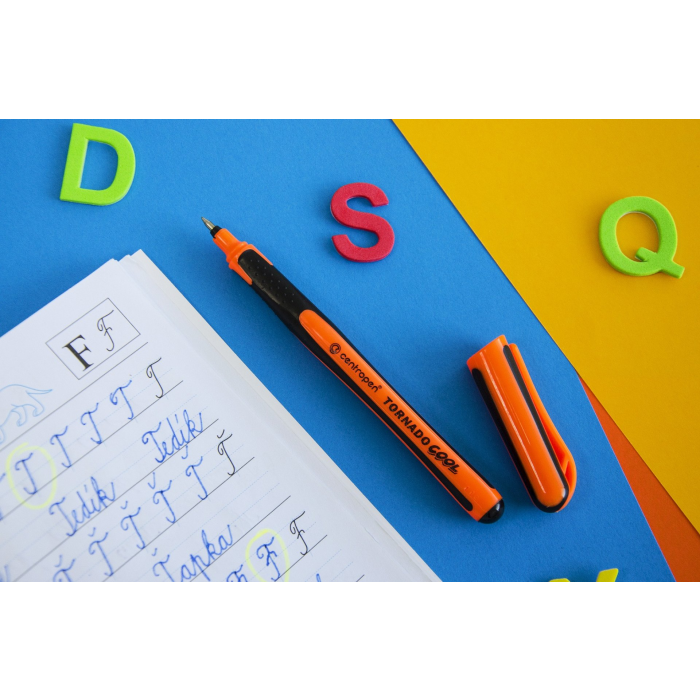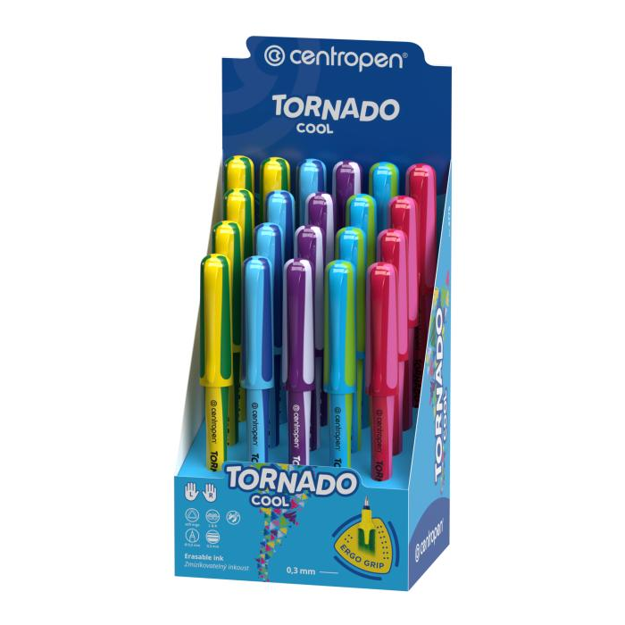 Roller pre školákov s ergonomickým držaním s masážnymi bodmi a modrým zmizíkovateľným atramentom. Pre ľavákov, pravákov i dysgrafikov. Šírka stopy 0,3 mm. Dodávaný v displeji 20+1 ks.