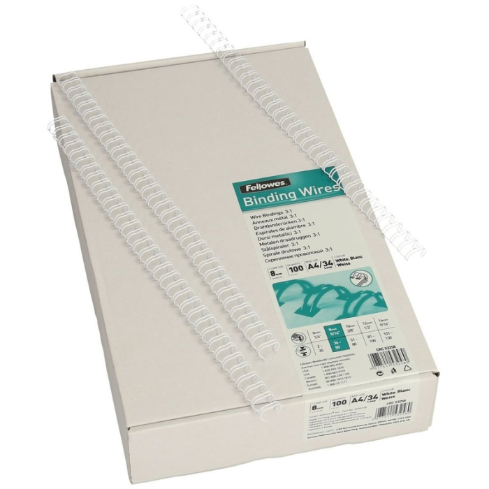 Drôtové hrebene Fellowes 8mm biele 3:1