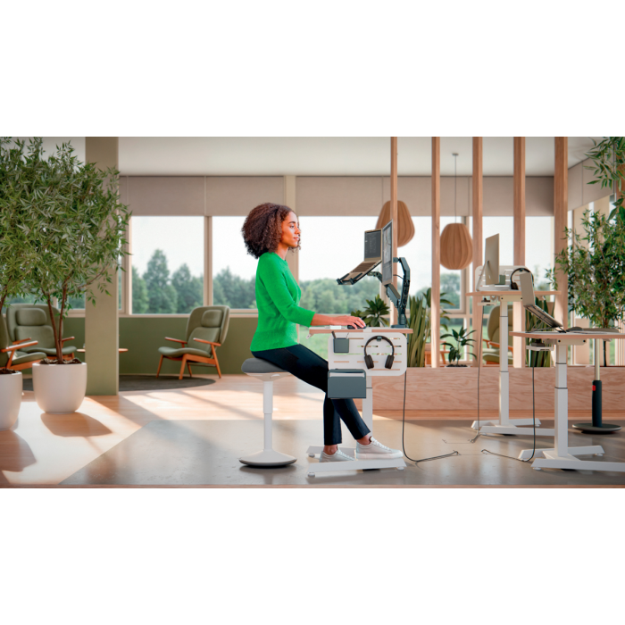 Ergonomická balančná stolička Leitz Ergo na sedenie, zamatovosivá