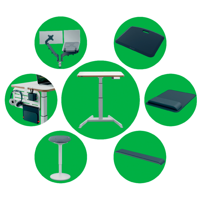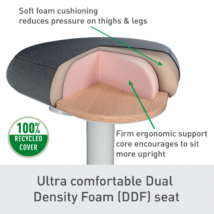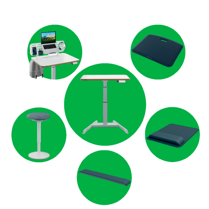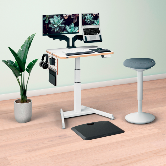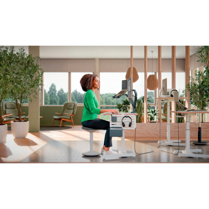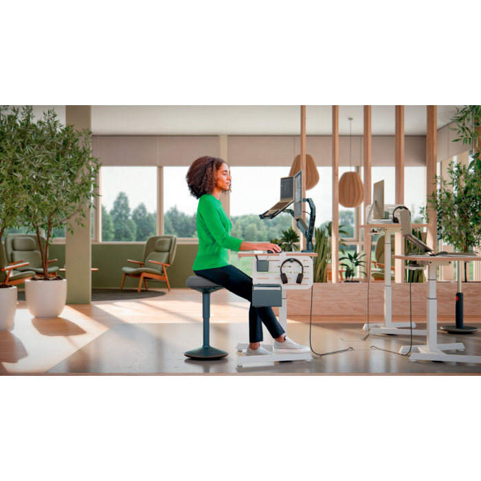 Pre perfektnú oporu v stoji pri stoloch na sedenie/st alebo pri vysokých rokovacích stoloch vďaka perfektnému výškovému nastaveniu pre každú telesnú výšku