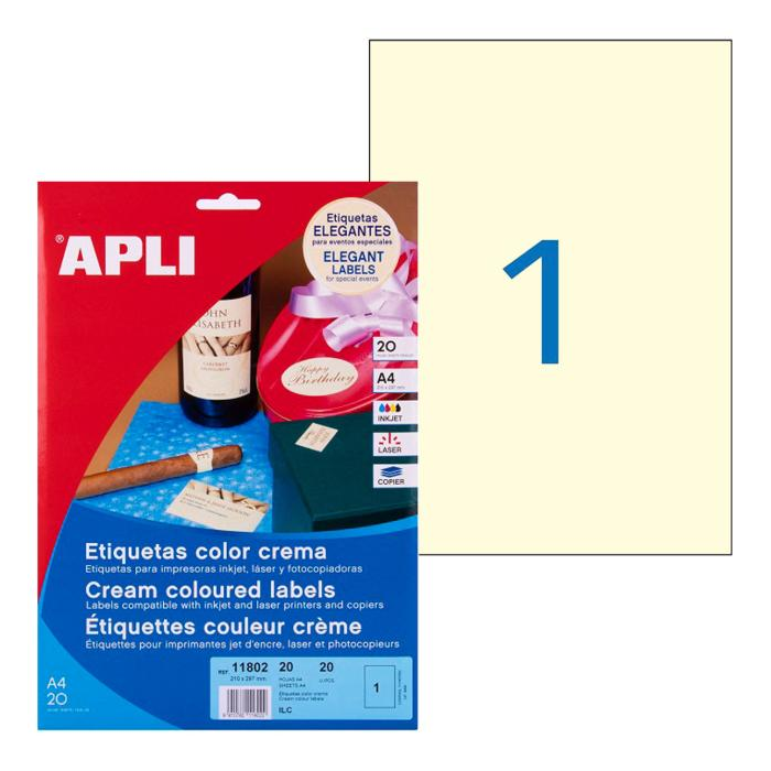 Etikety farebné 210x297mm APLI A4 20 hárkov krémové