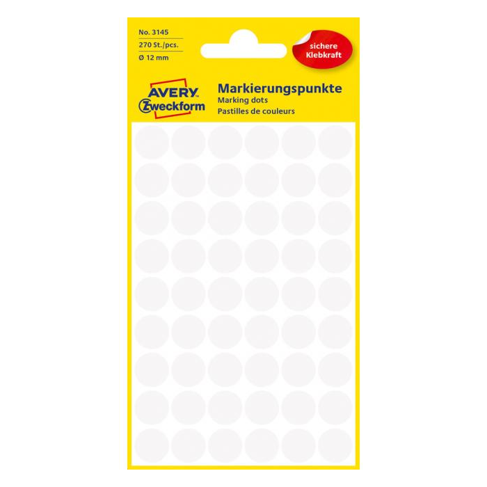 Kruhové etikety na ručný popis. Priemer 12 mm, v balení 270 etikiet. Farba biela.