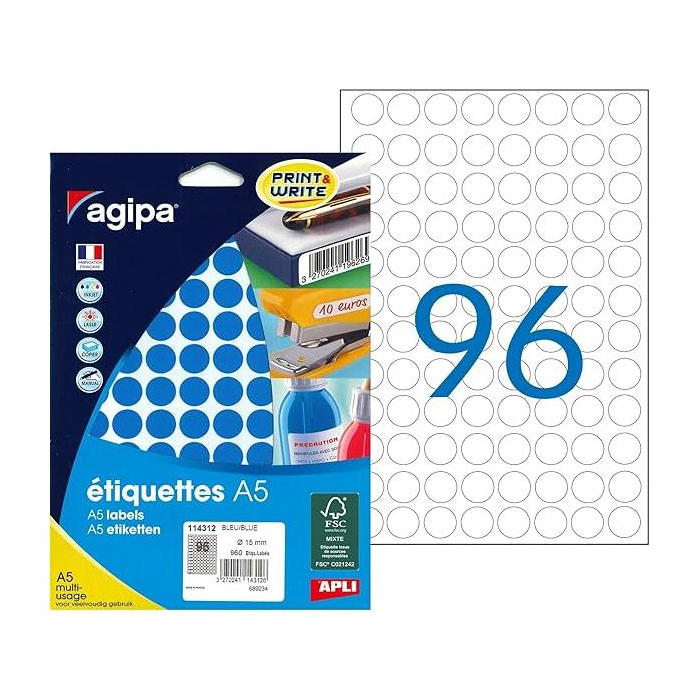 Etikety kruhové 15mm Agipa A5 modré