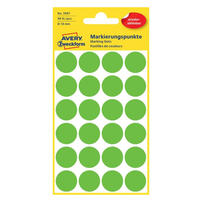 Etikety kruhové 18mm Avery odnímateľné zelené