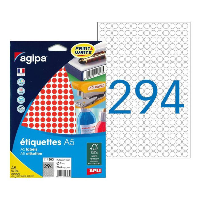 Etikety kruhové 8mm Agipa A5 červené