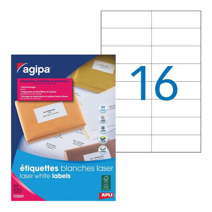 Etikety laser 105x37mm Agipa A4 100 hárkov