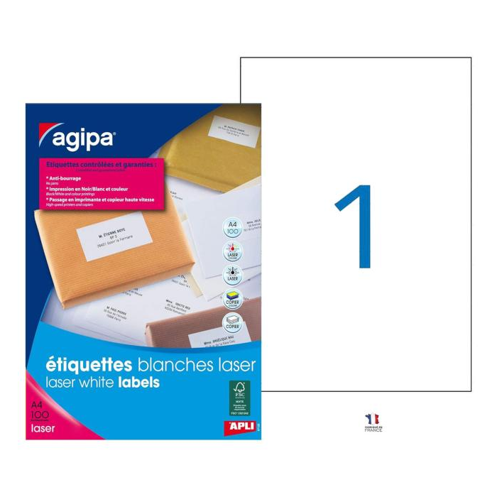 Etikety laser 210x297mm Agipa A4 100 hárkov