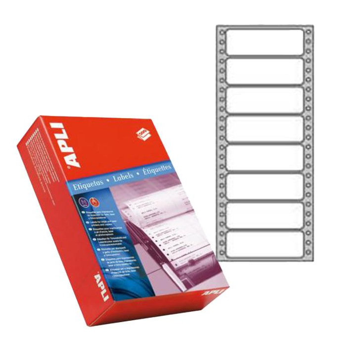 Tabelačné etikety na páse skladaných hárkov s postrannou vodiacou perforáciou, vhodné do ihličkových tlačiarní. Sú rozmiestnené v jednom rade na skladanom hárku. Farba biela. Balenie 500 hárkov.