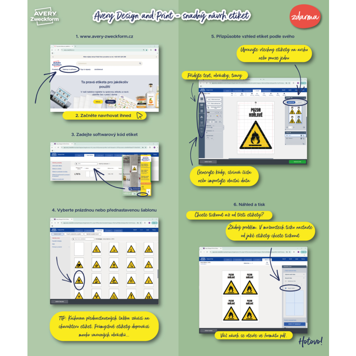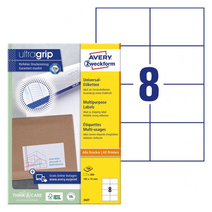Biele univerzálne etikety vhodné na každodenné použitie v atramentových a laserových tlačiarňach a kopírovacích strojoch. Vďaka inovatívnej technológie ultragrip sa môžete spoľahnúť na bezchybné natiahnutie archu a tlač bez zasekávania. Bezpečnostný okraj QCT zabraňuje zanášaniu tlačiarne lepidlom. Pre laserové tlačiarne testované a certifi kované TÜV SÜD. Vysoká lepivosť na rôznych povrchoch. Ostrá tlač bez bez rozmazávania. Etikety sú vyrobené spôsobom šetrným k životnému prostrediu, majú certifi káciu FSC®, sú bielené bez použitia chlóru. Šablóny a softvér pre jednoduchú a rýchlu tlač etikiet k dispozícii zdarma. U niektorých rozmerov systém QuickPEEL™ na rýchlejšie odlepenie etikiet. Formát A4. Balenie 100 hárkov. Farba biela.