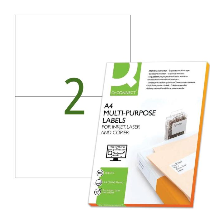 Etikety univerzálne 210x148,5mm Q-CONNECT A4 100 hárkov