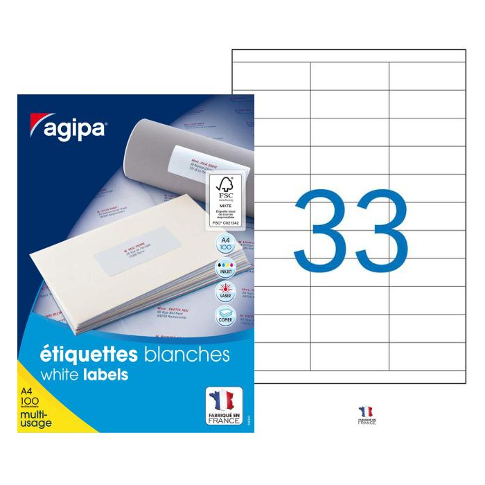 Etikety univerzálne 70x25mm Agipa A4 100 hárkov