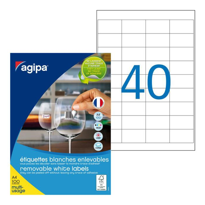 Etikety univerzálne odnímateľné 48,5x25,4mm Agipa A4 100 hárkov
