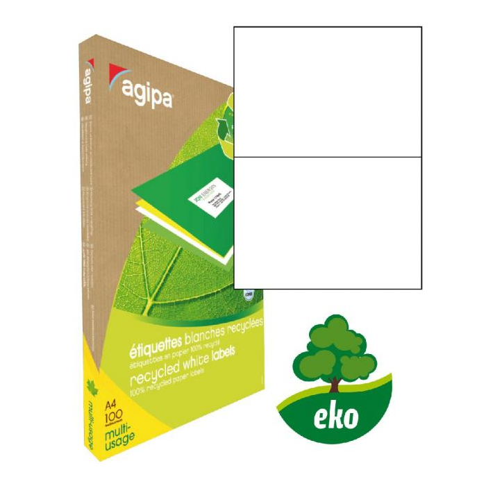 Etikety univerzálne recyklované 210x148,8mm Agipa A4 100 hárkov