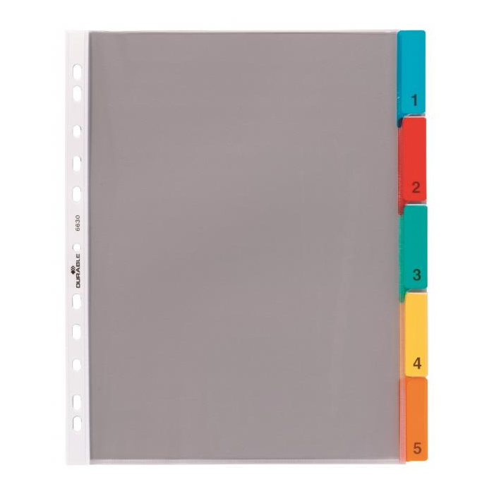 Sada zakladacích obalov DURABLE s rozlišovacími výmennými indexami na rozlíšenie zakladacích obalov, ktoré je potrebné rýchlo vyhľadať. Väčšie balenie 10 sád.