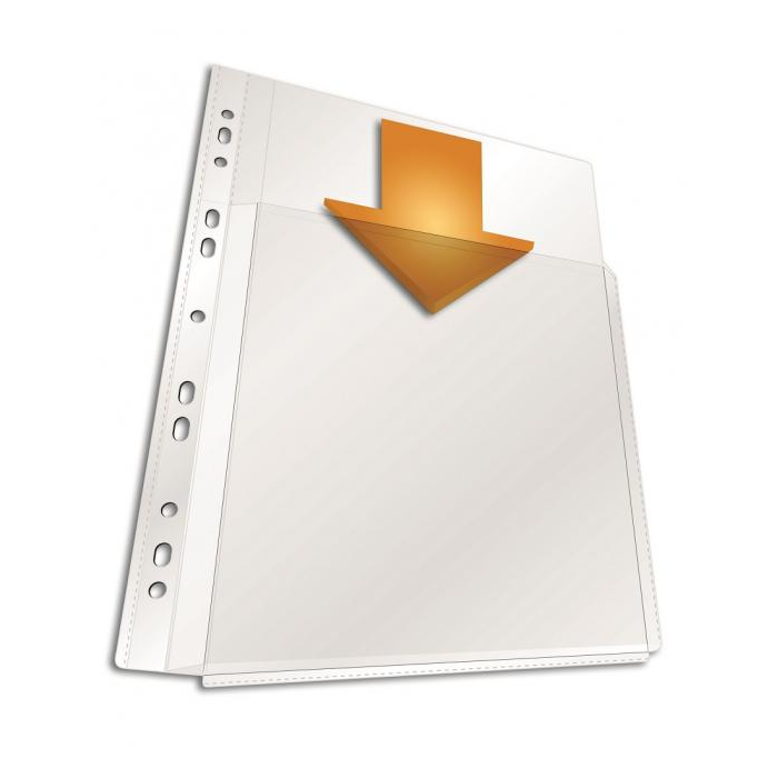 Priehľadný obal s eurodierovaním zo silnej PVC fólie. Predné vrecko s voľným chrbátom, ktorý sa prispôsobí šírke vloženého katalógu alebo počtu vložených listov. Balenie 5 ks. Hrúbka 180 mic.