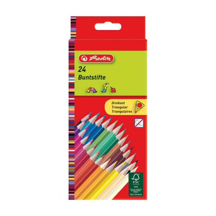 Farbičky 24 farieb, trojhranné, z lipového dreva, lakované, odolné proti zlomeniu.