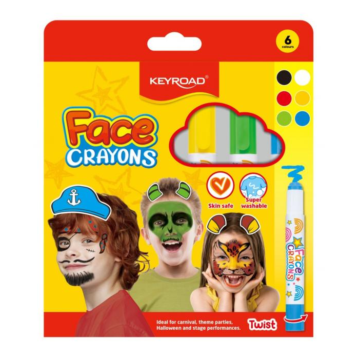 Farby na tvár KEYROAD, netoxické, 6 ks, mix farieb