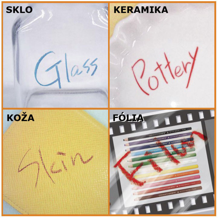 Farebná ceruzka v papierovom obale bez potreby strúhania. Špeciálne vyvinutá tuha takmer na všetky povrchy ako sklo, kovy a plasty. Tuha na olejovej báze. Dĺžka stopy 2000-4000 m, šírka stopy 1 - 4,4 mm.