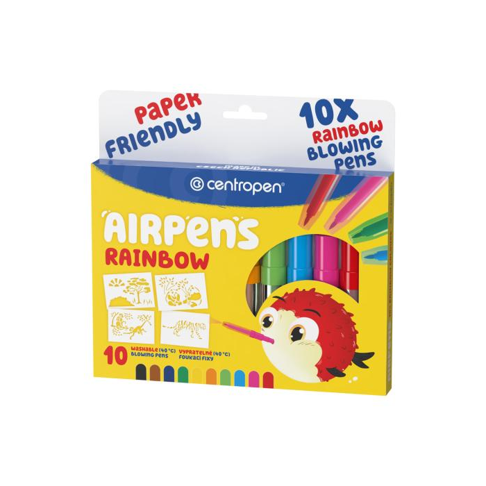 Fúkacie fixky na papier. Zdraviu neškodlivý atrament. Ľahko umývateľné a vyprateľné. 10 farebných odtieňov. 4 šablóny.