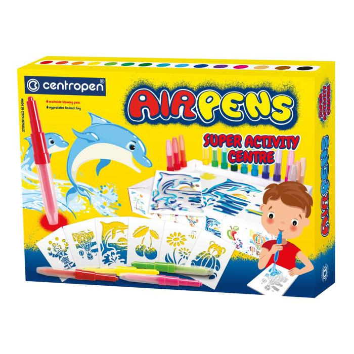 Fúkacie fixky na papier. Zdraviu neškodlivý atrament. Ľahko umývateľné a vyprateľné. 15 farebných odtieňov. 14 +2 šablóny. 20 hárkov A4 a 20 hárkov A5.