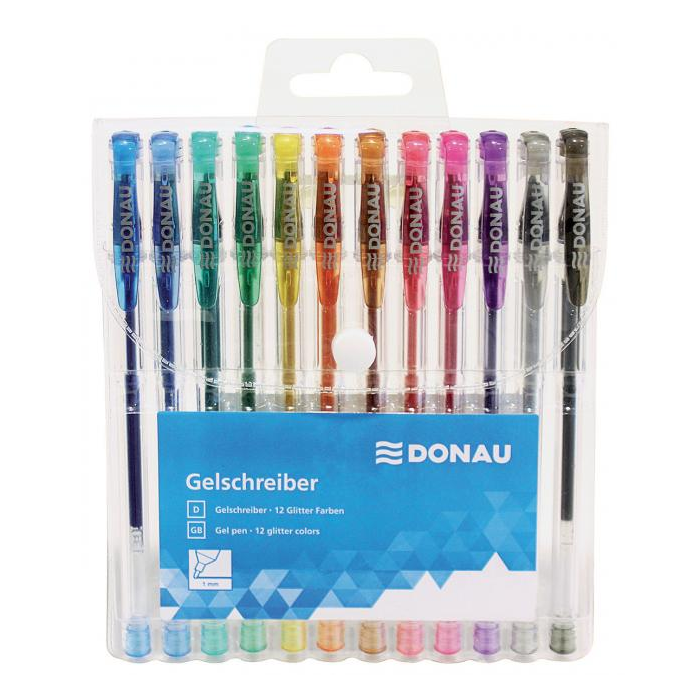 Gélové metalické rollery Donau. Šírka stopy 1 mm. Sada 12 farieb.