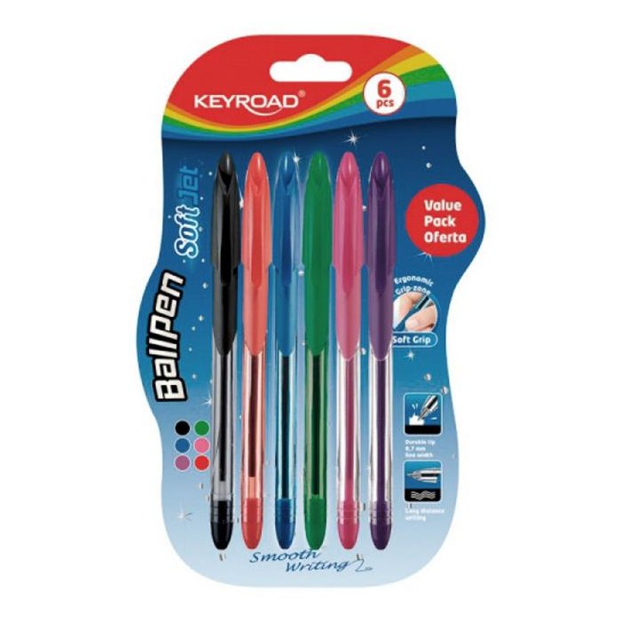 Guľôčkové pero KEYROAD Soft Jet 0,7 mm, blister 6 ks, mix farieb