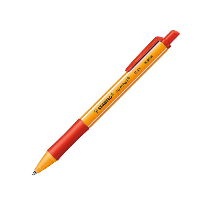 Či už na písanie v kancelárii, v škole alebo na univerzite alebo na písanie poznámok doma, STABILO pointball je vždy tou správnou voľbou. Jeho farebný dizajn v oranžovej farbe s bielymi prúžkami pripomína svetoznámy jemný liner STABILO point 88. Vďaka pogumovanej úchopovej zóne sa guľôčkové pero pohodlne a bezpečne drží v ruke a nekĺže. Mäkká náplň zaisťuje rýchle a plynulé písanie. V záujme ochrany životného prostredia je guľôčkové pero so stláčacím mechanizmom CO2 neutrálne a emisie sú plne kompenzované. Akonáhle je prázdne, môže byť znovu naplnené náplňami STABILO Ballpoint Refill. Je dostupné v šiestich farbách - modrej, čiernej, červenej, zelenej, fialovej a tyrkysovej. Z toho sú farby modrá, čierna a zelená archivačné. Farba tuhy červená.