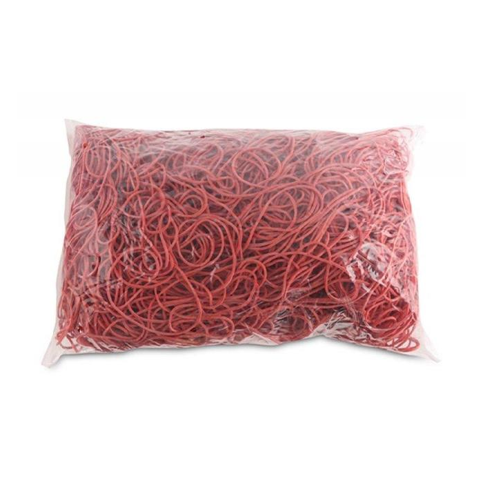 Odolné a pružné gumičky vyrobené z materiálu s prímesou gumy (60 %). Rozmery (hrúbka × šírka) 1,5 × 1,5 mm. Priemer 80 mm. Farba červená.
