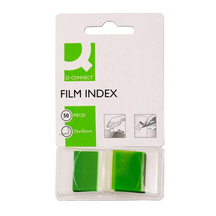 Indexové fóliové lístky, popisovateľné a snímateľné. Rozmery 25 × 43 mm. V balení 50 lístkov. Farba zelená.